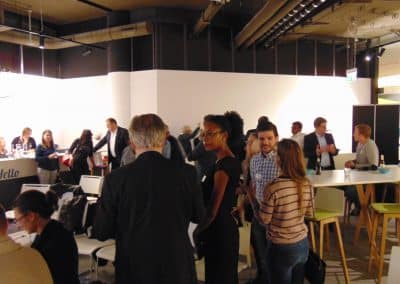 Den Höhepunkt des Abends bildeten dabei die Vorträge der beiden Mentoren: Jean-Luc Vey (Deutsche Bank) sowie Mynia Deeg (Antelope Club) begeisterten dabei das Publikum, indem sie aufgrund ihrer unterschiedlichen Branchenzugehörigkeit das Thema New Work jeweils aus der Corporate-Sicht als auch aus der Perspektive eines Startups betrachteten. „It´s all about the culture!“, so Jean-Luc Vey. Beide verdeutlichten dabei, wie wichtig flexible Arbeitszeiten und die Unternehmenskultur seien.
