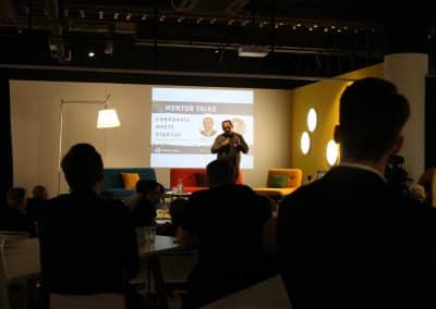 Colin Berr, Gründer und CEO von Mentor Lane, gab kurz Neuigkeiten rund um Mentor Lane bekannt. Unter anderem wurde das neue „Corporate X Programm“ für Unternehmen angekündigt, das im Frühling 2019 beginnt. Nach kurzer Vorstellungsrunde der Gäste starteten die Mentoren mit ihren Präsentationen. Anschließend gab es eine moderierte Diskussionsrunde, bei der die Teilnehmer ihre Fragen mit den Mentoren klären konnten. Der Abend klang schließlich in gemütlicher Atmosphäre bei Snacks und Drinks aus, wobei es reichlich Zeit und Raum zum Netzwerken gab und neue Kontakte geknüpft werden konnten.
